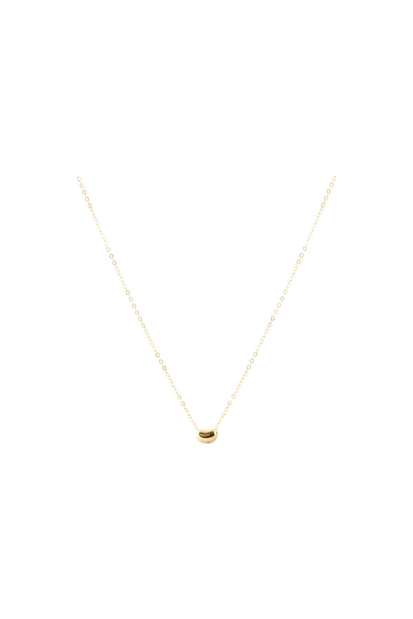 14k golden bean shaped pendant, on a gold 14" chain.