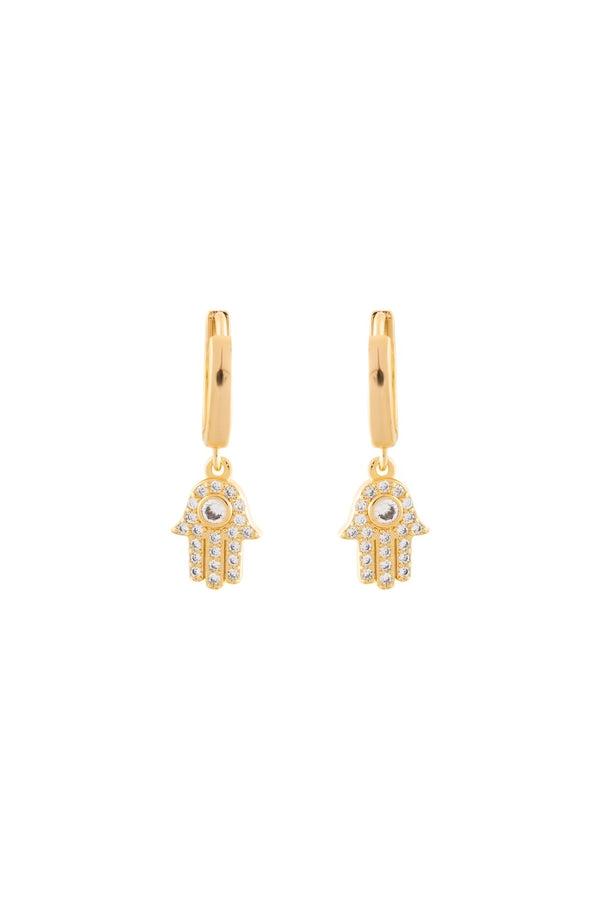 Stand out from the crowd with these golden hanging huggies. Smple yet fun, these earrings are a combination of playful and chic with silver diamantes.