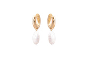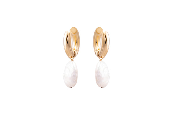 A thick gold filled hoop showcasing an organic freshwater pearl for a refreshed classic look.