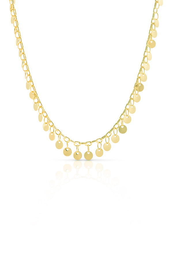 Stunning 18k yellow gold filled sequin disc embellished necklace .